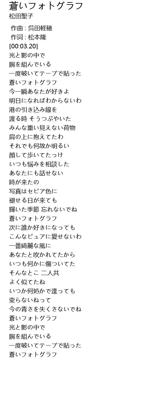 | [03:33.44] | 蒼いフォトグラフ |