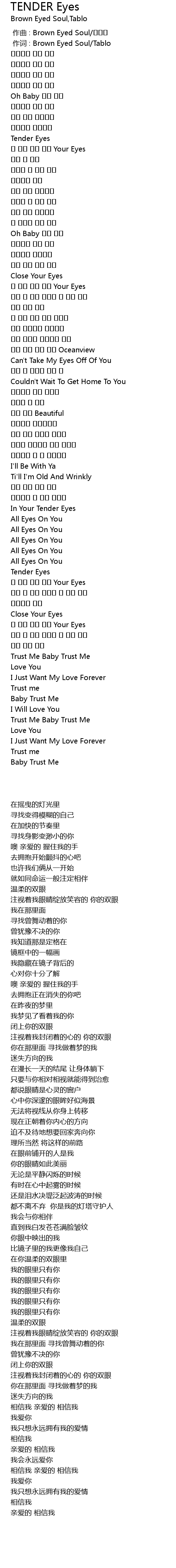 | [00:01.00] | 作词 : Brown Eyed Soul/Tablo |