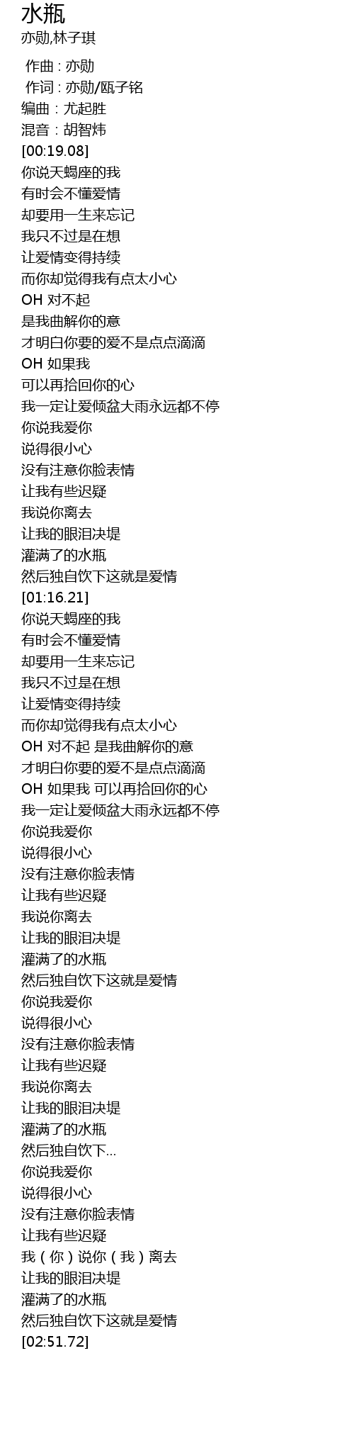 | [01:09.52] | guàn mǎn le de shuǐ píng |