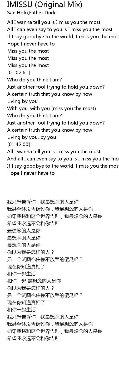 All I can even say to you is I miss you the most |