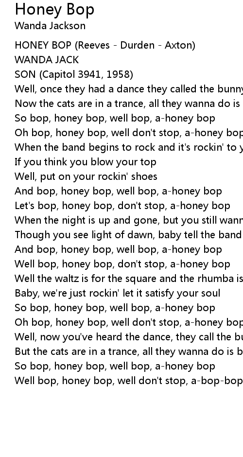 And bop, honey bop, well bop, a-honey bop |