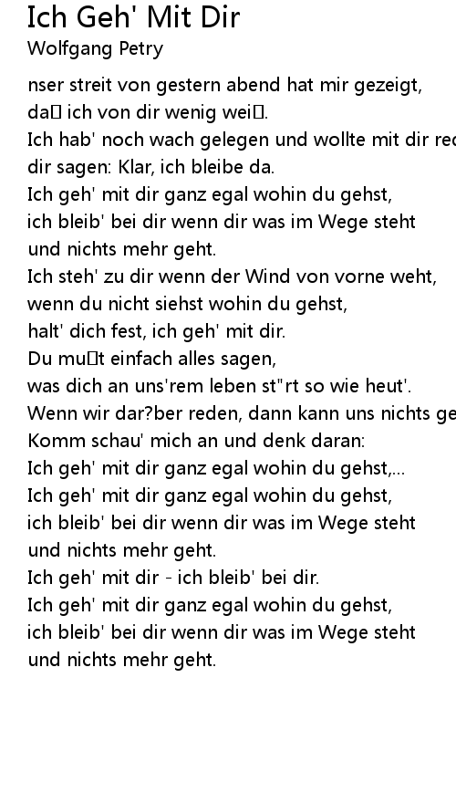 | Song | Ich Geh' Mit Dir |