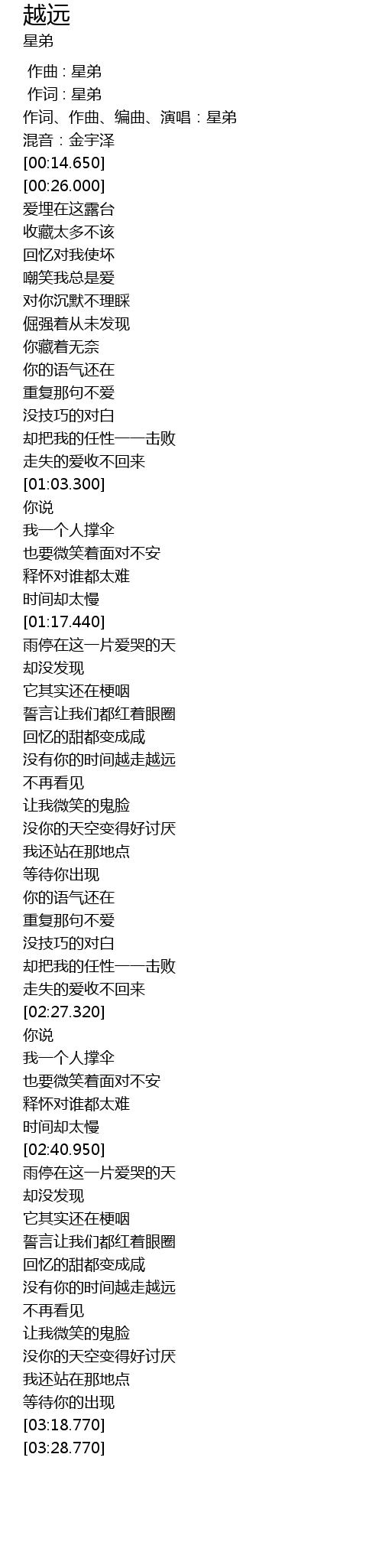 | [00:01.00] | 作词 : 星弟 |