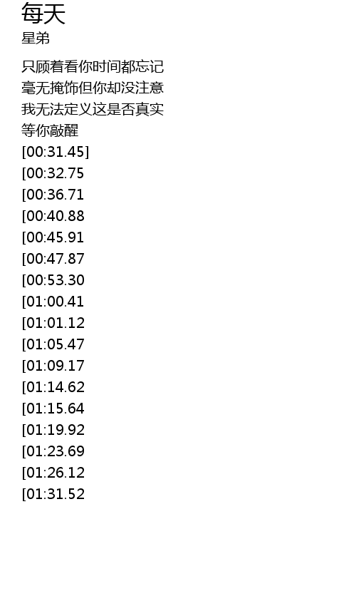| [02:17.67][01:01.12] | 每天 我都会比昨天对你更迷恋 |