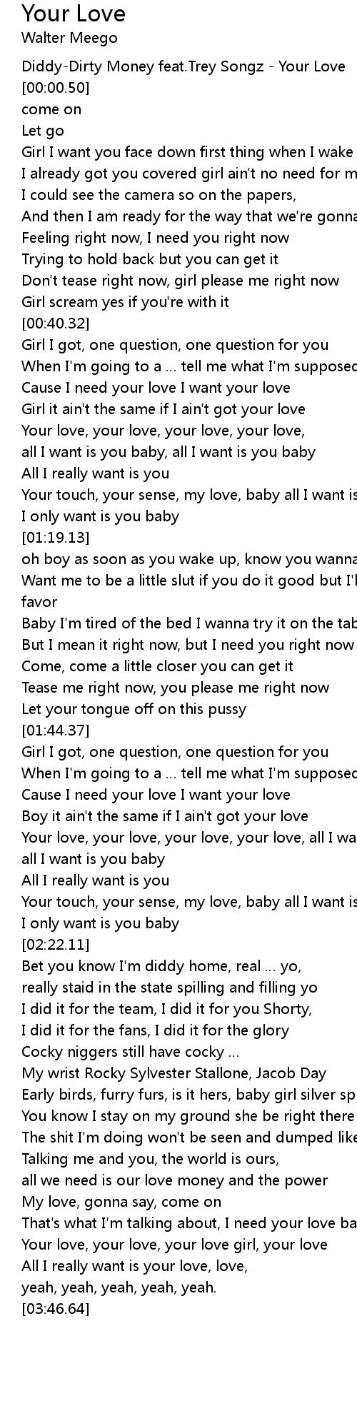 | [00:-01.00] | DiddyDirty Money feat. Trey Songz Your Love |