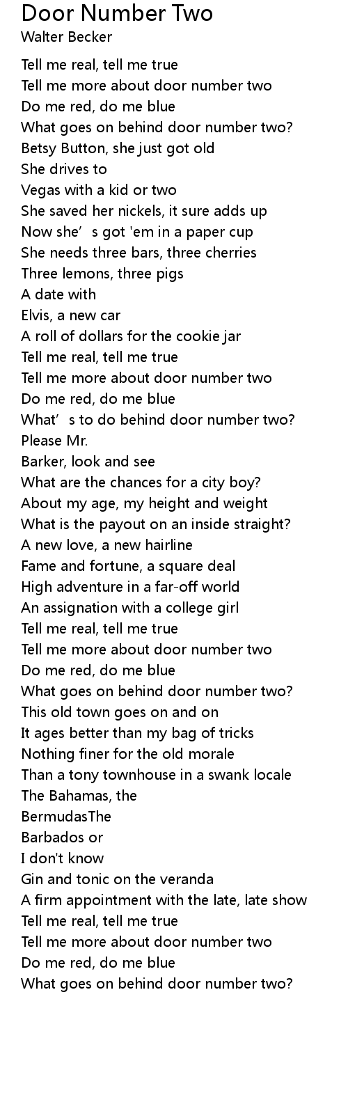 | Song | Door Number Two |