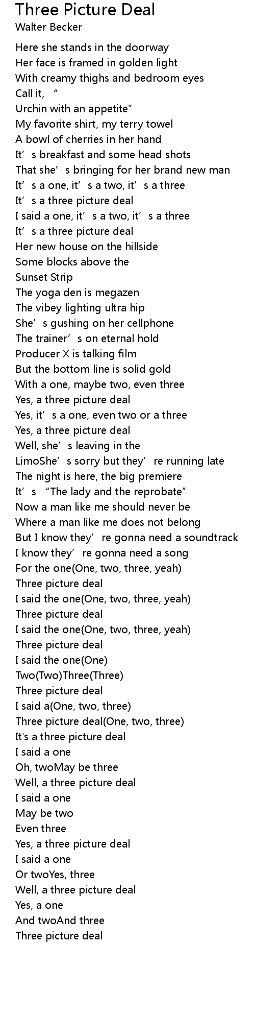 | Song | Three Picture Deal |