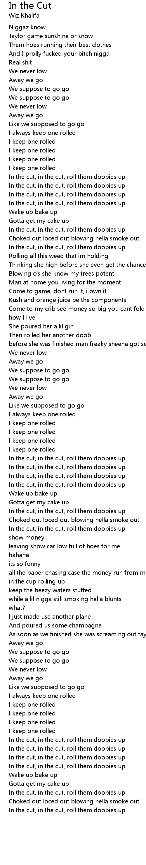In the cut, in the cut, roll them doobies up |