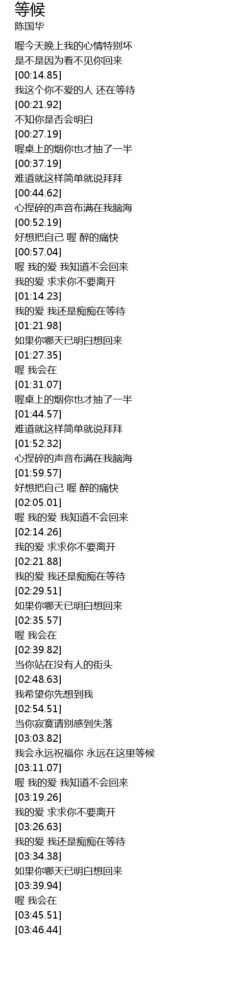 | [03:27.70] | 我的爱 我还是痴痴在等待 |