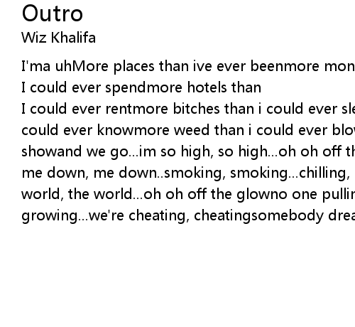 | I could ever rentmore bitches than i could ever sleep... withmore faces than i could ever knowmore weed than i could ever blowmore fans from grow a every showand we go...im so high, so high...oh oh off the glow, glow...no one pulling me down, me down..smoking, smoking...chilling, chilling...up at the top of the world, the world...oh oh off the glowno one pulling me down, me down...growing, growing...we're cheating, cheatingsomebody dreamingbut you just living |
