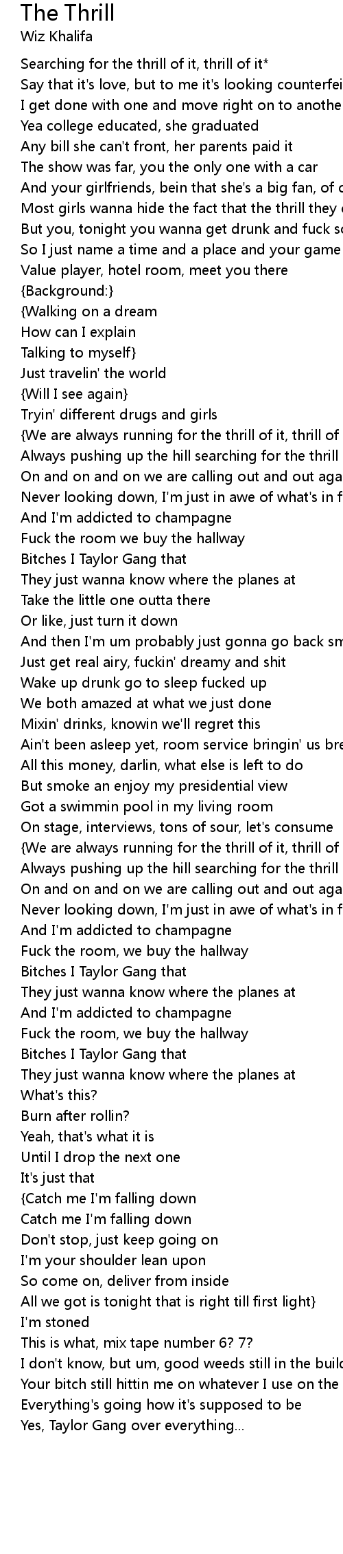 Most girls wanna hide the fact that the thrill they chase it |