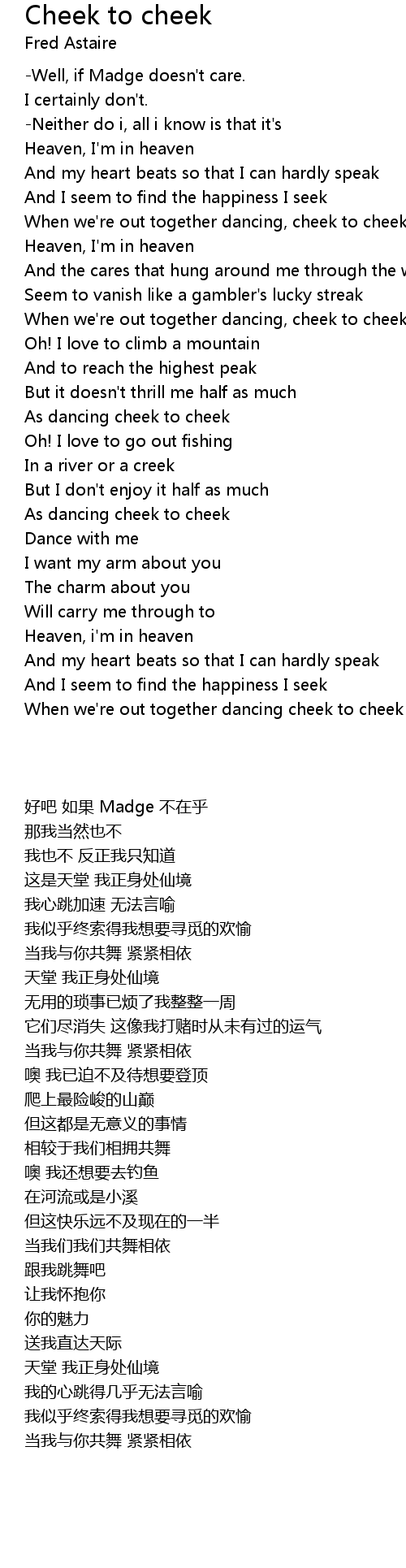 When we're out together dancing, cheek to cheek |
