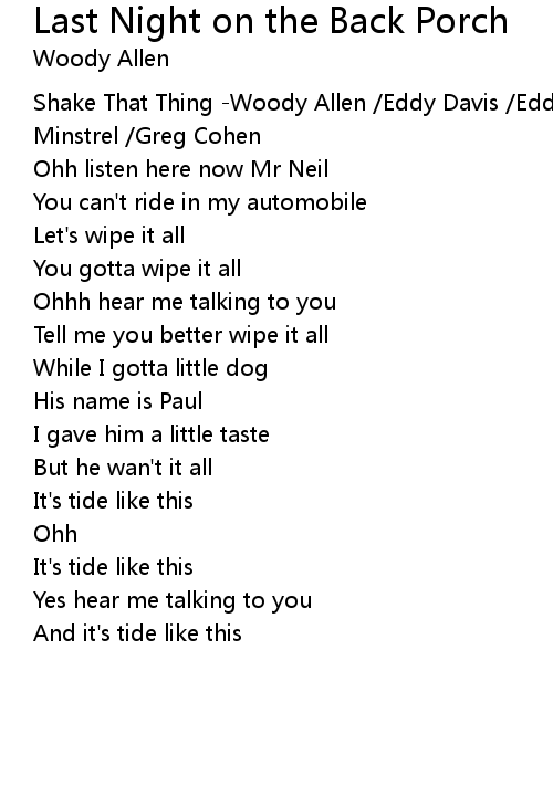 Shake That Thing -Woody Allen /Eddy Davis /Eddy Davis ,The Manhattan Minstrel /Greg Cohen |