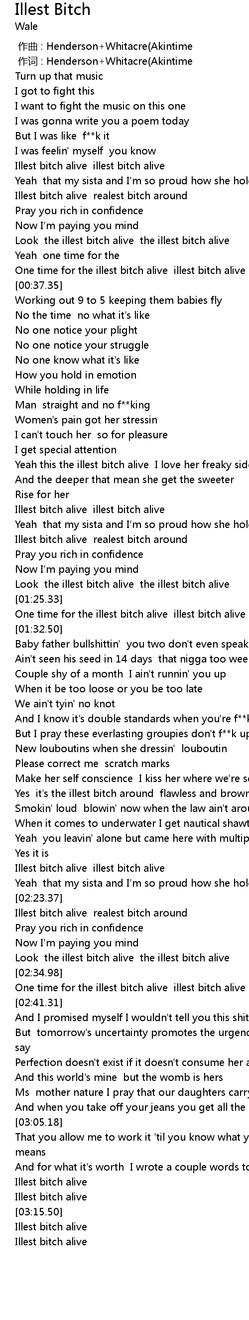 | [02:36.69] | One time for the illest bitch alive illest bitch alive |