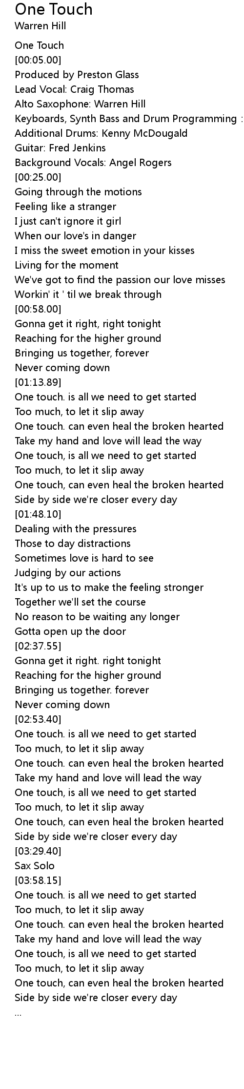 | [01:23.00] | One touch. can even heal the broken hearted |