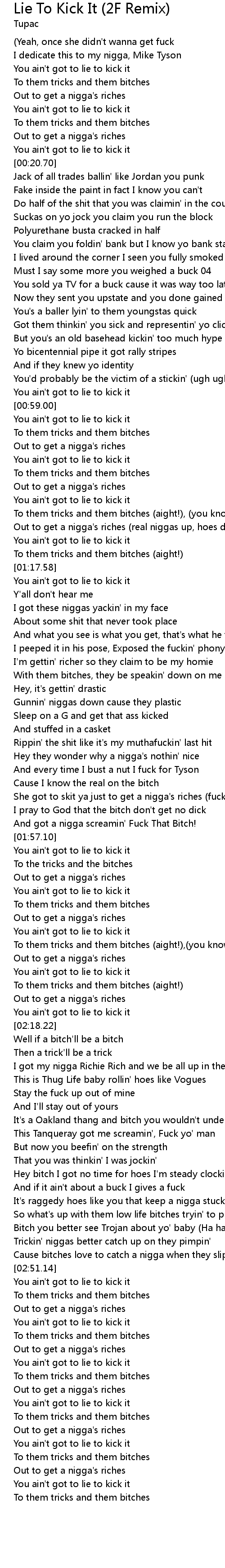 You ain't got to lie to kick it |