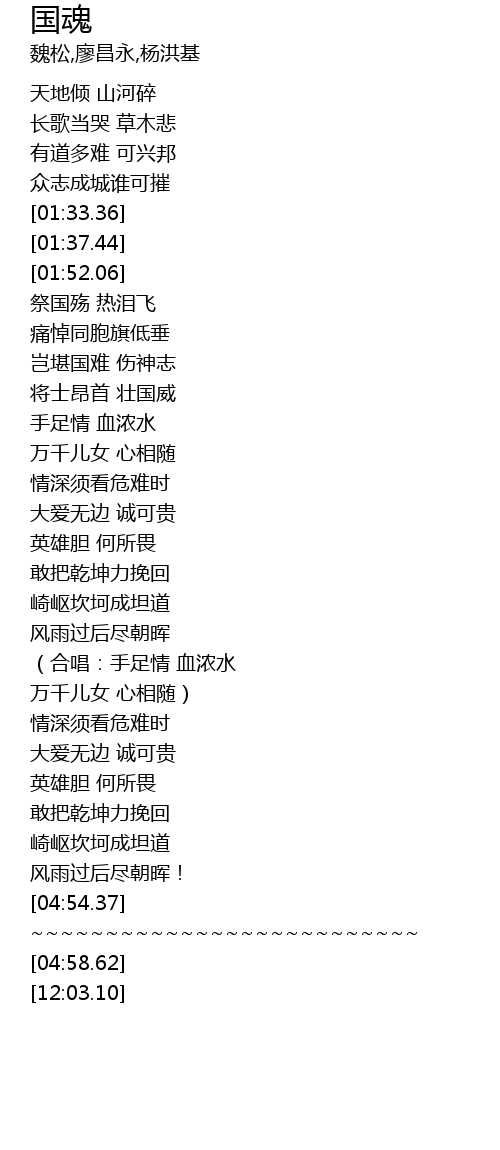 | [02:04.42] | 痛悼同胞旗低垂 |