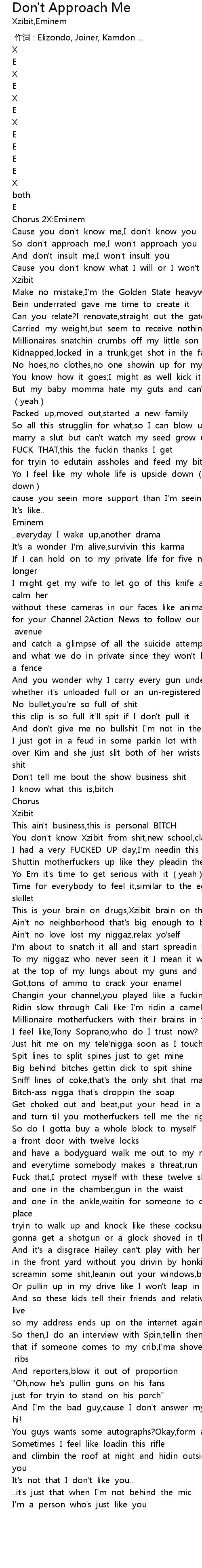 | [02:33.137] | You don't know Xzibit from shit,new school,class dismissed |