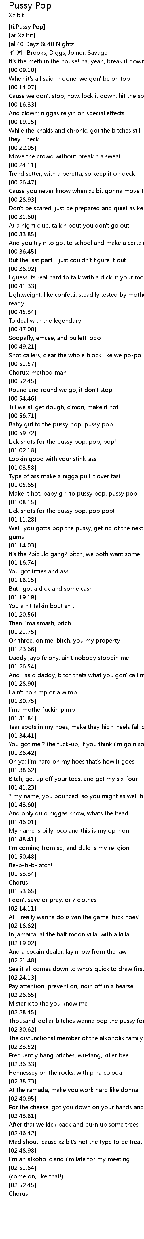 | [00:56.91] | Baby girl to the pussy pop, pussy pop |