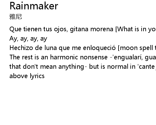 | The rest is an harmonic nonsense ' engualarí, gualabú, olé, olé, loleilo' that don' t mean anything but is normal in ' cante jondo' and a repetition of the above lyrics |