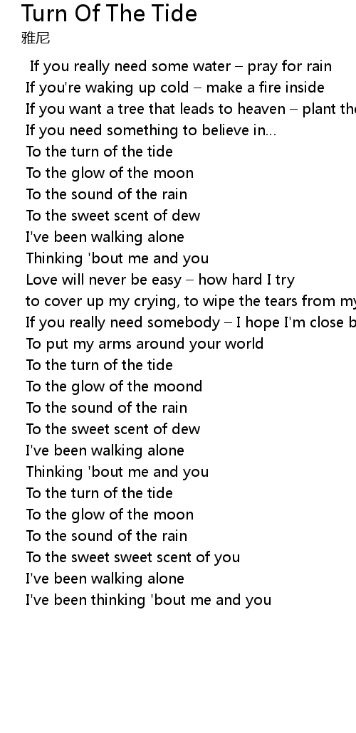 | To the turn of the tide | |