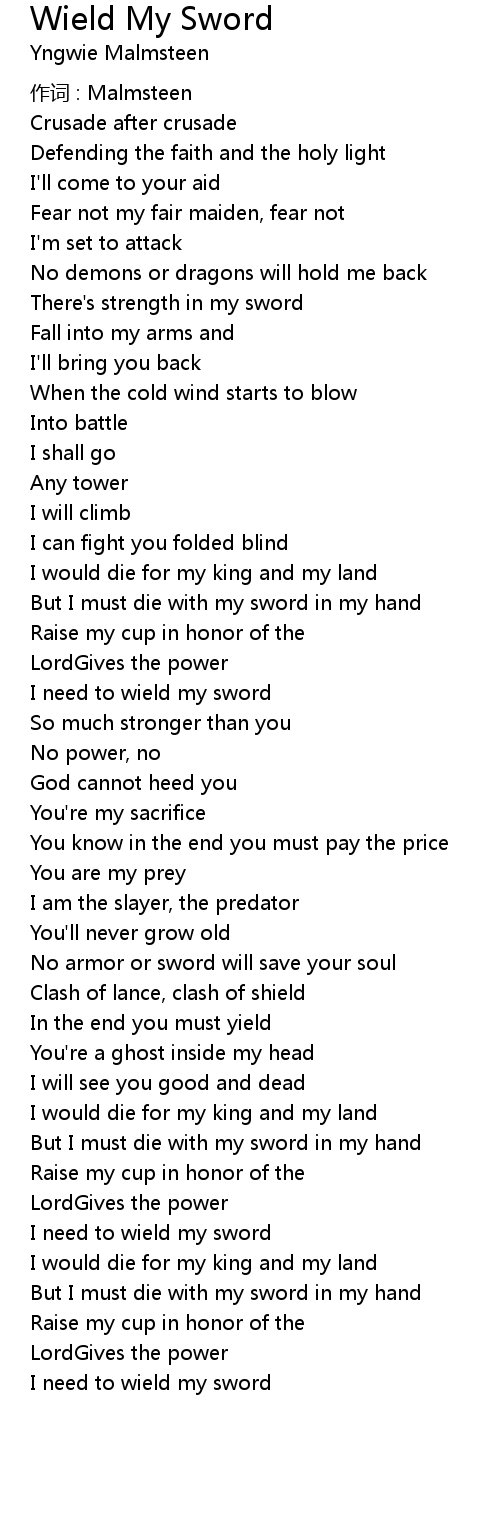 | Song | Wield My Sword |
