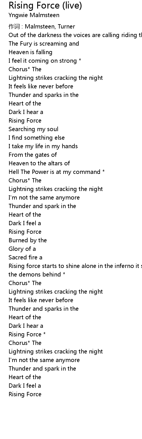| Rising force starts to shine alone in the inferno it soars ever higher leaving the demons behind | |