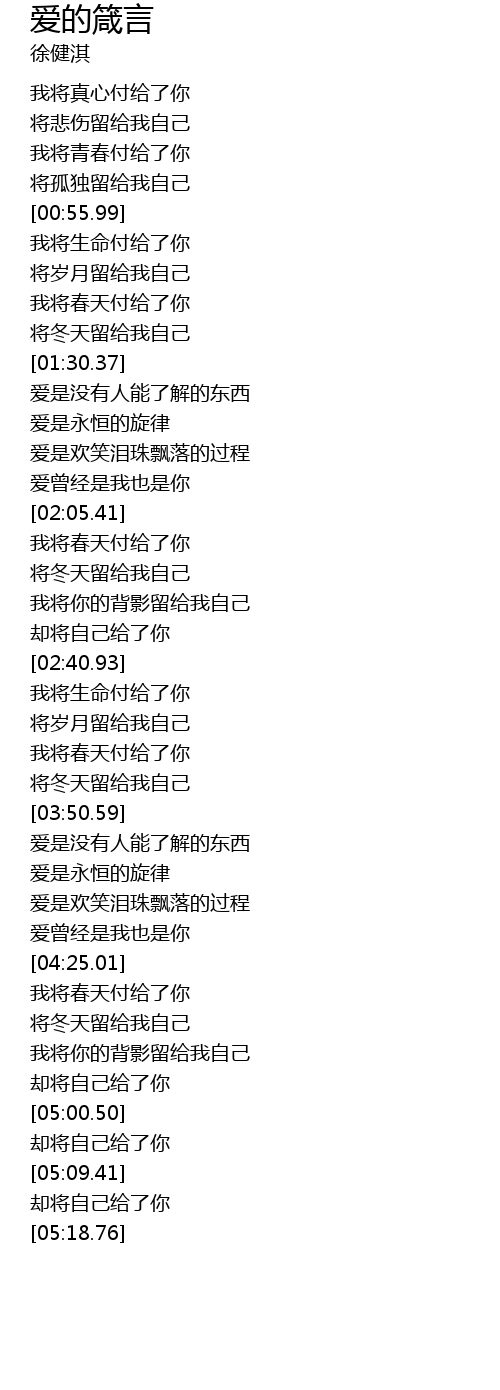 | [01:59.30] | 爱曾经是我也是你 |