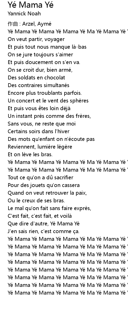 | Yé Mama Yé Mama Yé Mama Yé Ma Yé Mama Yé Yé Yé Ma |