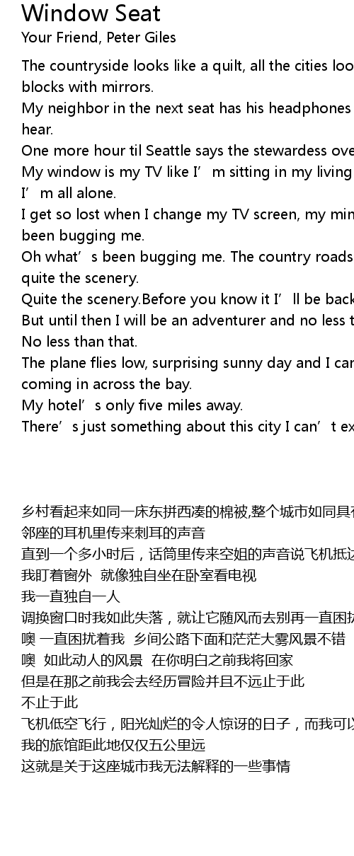 | [00:35] | The countryside looks like a quilt, all the cities look like building blocks with mirrors. |