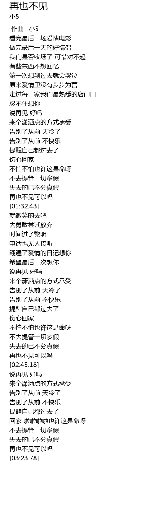 | [03:20.26] | zài yě bú jiàn kě yǐ ma |