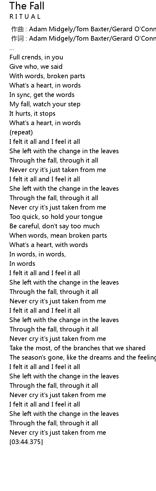 | [00:35.240] | My fall, watch your step |