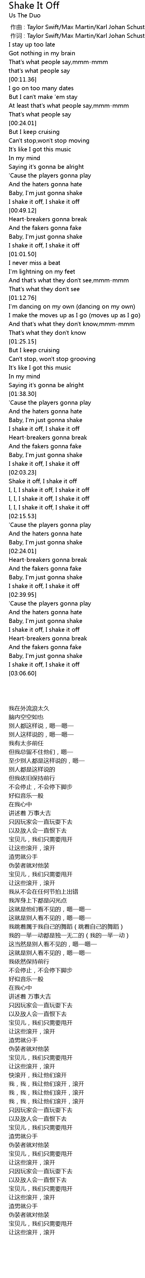 | [02:06.04] | I, I, I shake it off, I shake it off |