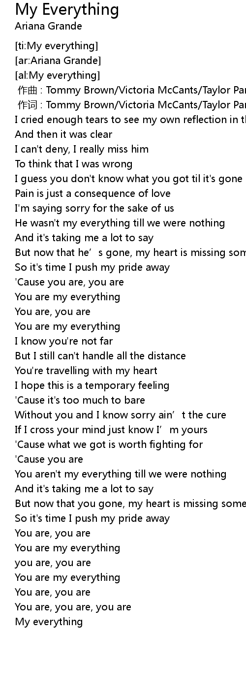 | [00:01.00] | zuò cí : Tommy Brown Victoria McCants Taylor Parks Ariana Grande |