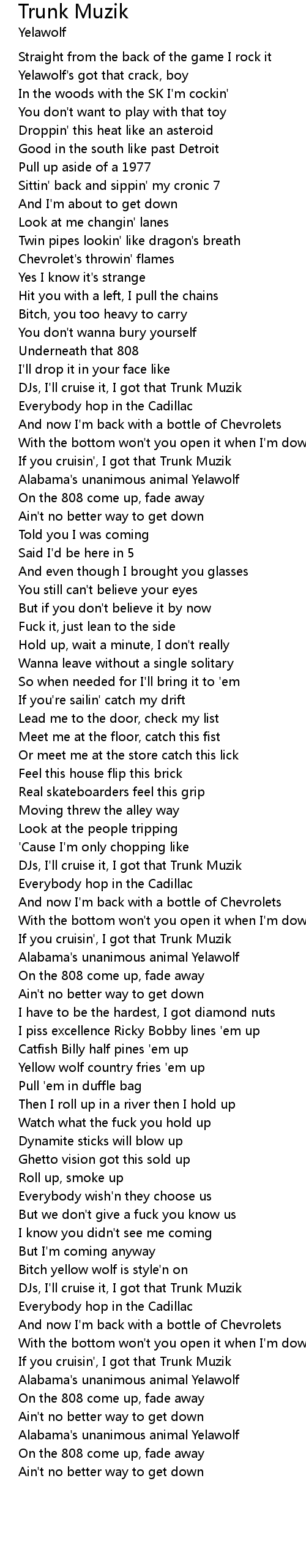 DJs, I'll cruise it, I got that Trunk Muzik |