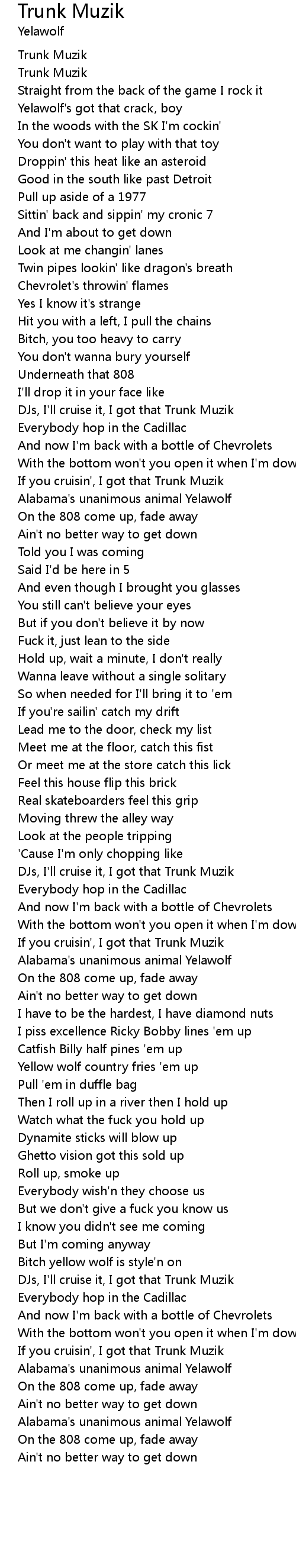 If you cruisin', I got that Trunk Muzik |