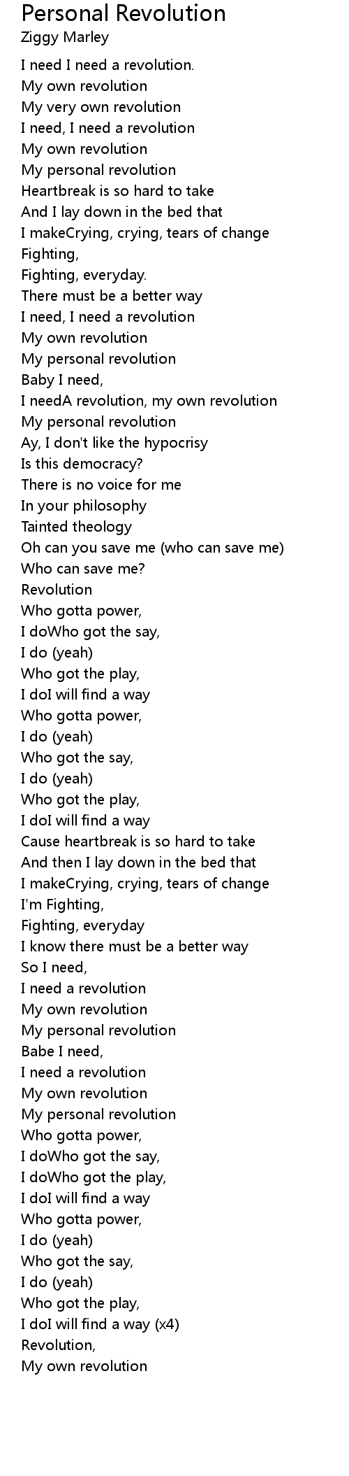 I needA revolution, my own revolution |