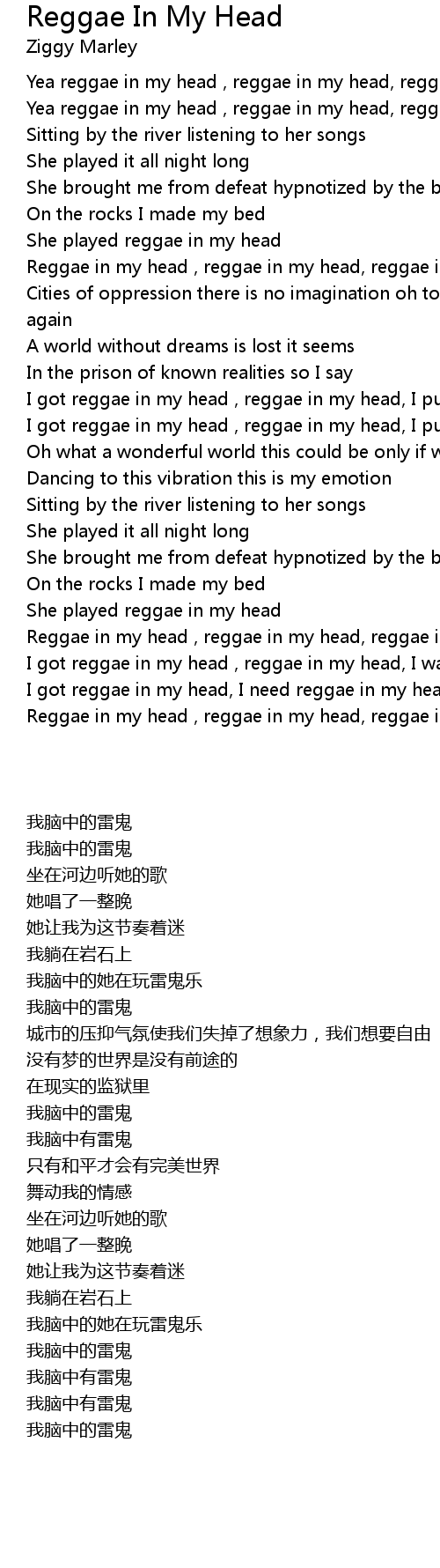 Yea reggae in my head , reggae in my head, reggae in my head |