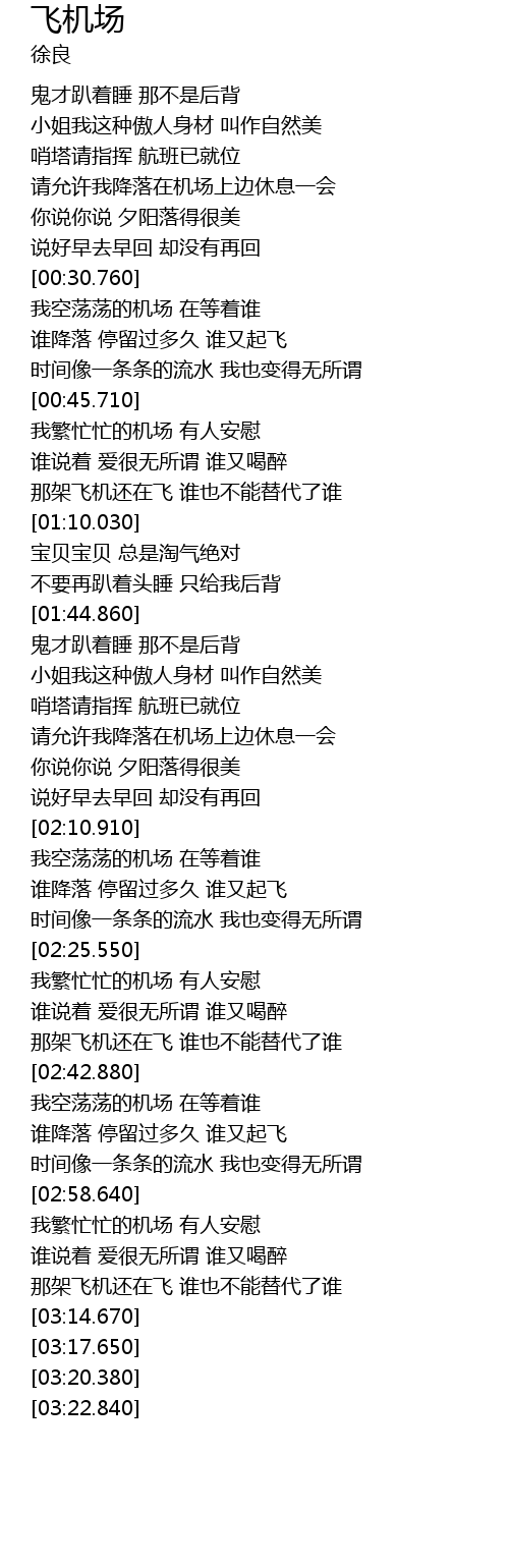 | [01:58.380] | qing yun xu wo jiang luo zai ji chang shang bian xiu xi yi hui |