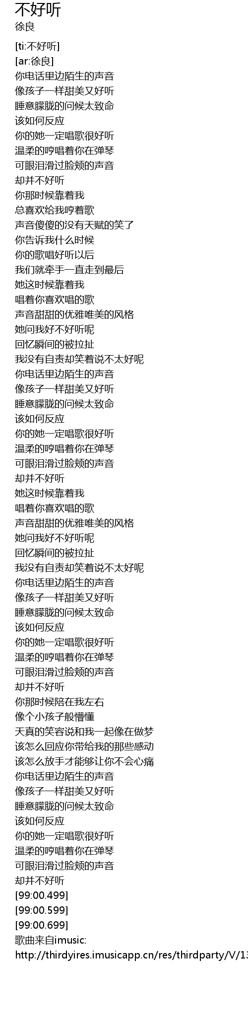 | [99:01.199] | gē qǔ lái zì imusic: http: thirdyires. imusicapp. cn res thirdparty V 1399 mp3 00 05 69 1399000569000800. mp3 |