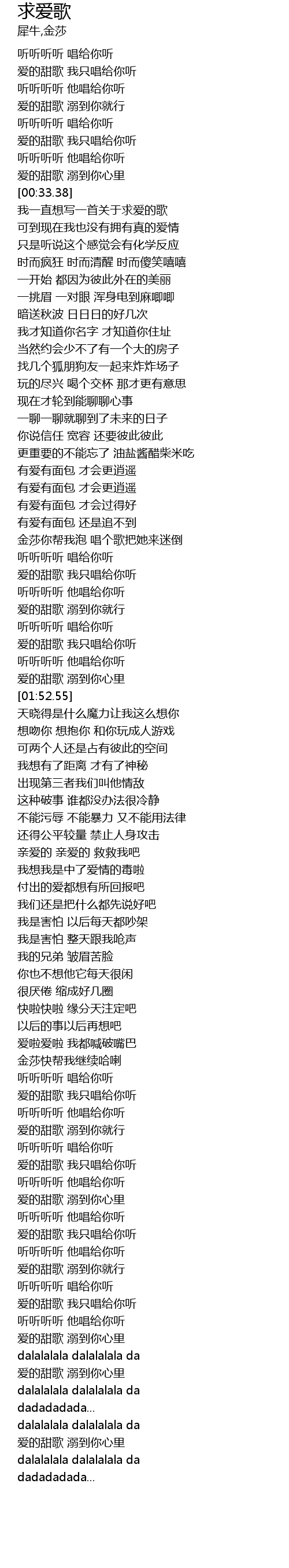 | [02:52.44] | 金莎快帮我继续哈喇 |
