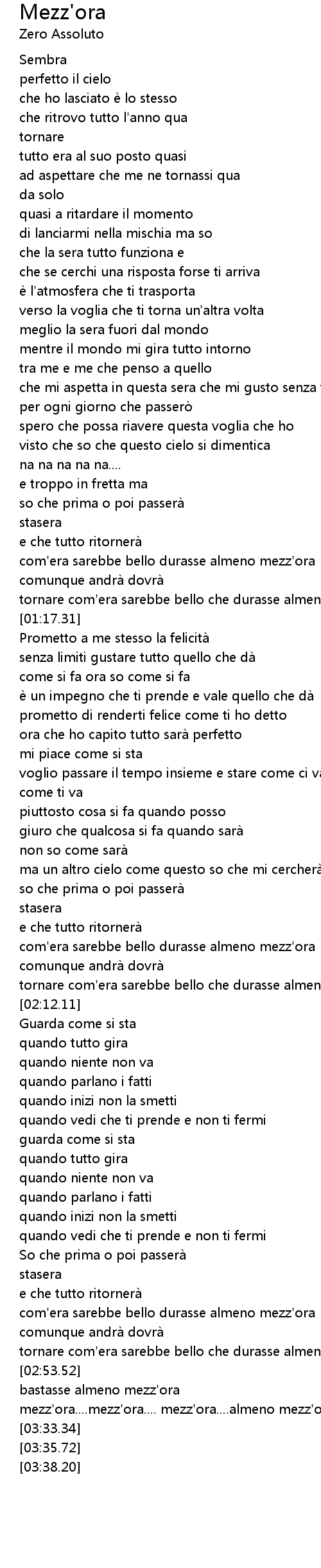 | [01:00.98] | com'era sarebbe bello durasse almeno mezz'ora |