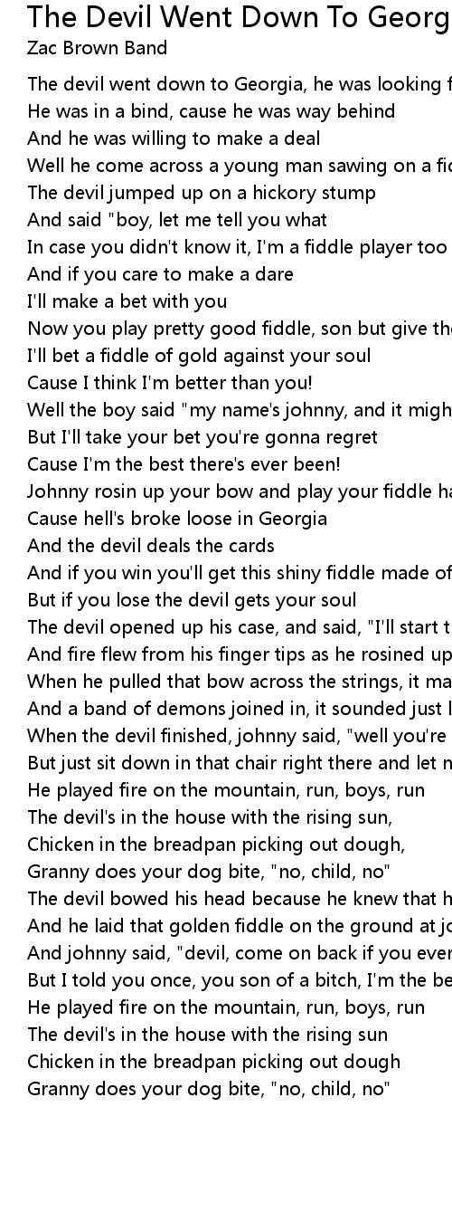 The devil went down to Georgia, he was looking for a soul to steal |