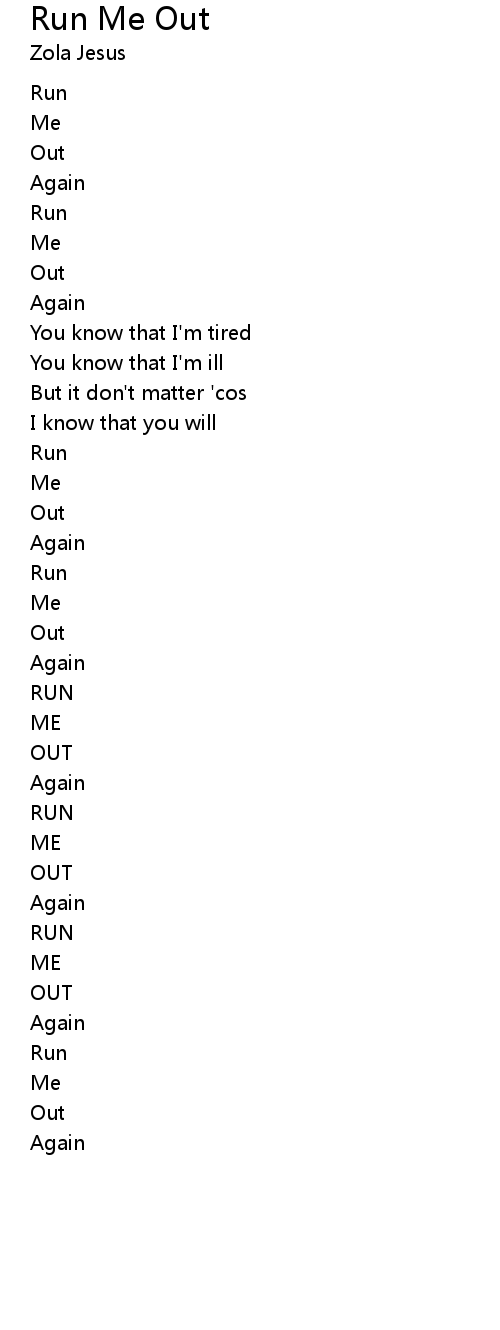 | Song | Run Me Out |