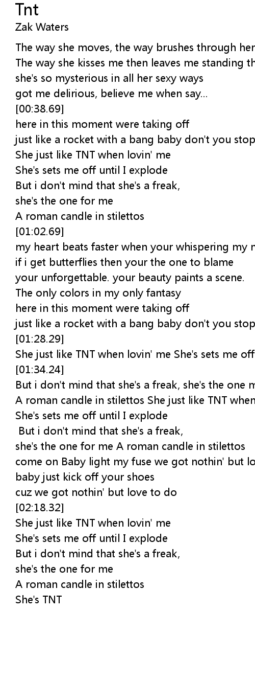 A roman candle in stilettos She just like TNT when lovin' me |