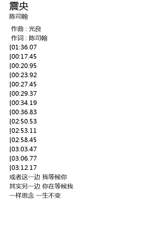 | [03:17.26][02:50.53][02:02.80][00:41.75] | 我愿意 平静守候 |