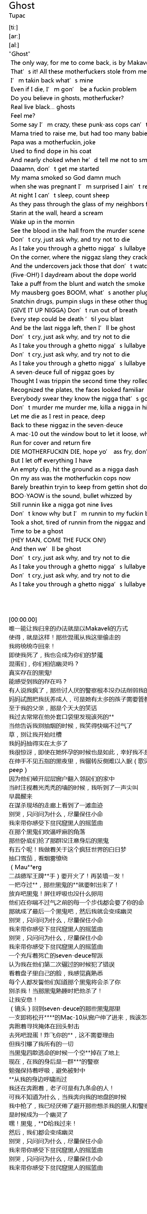 | [00:24.73] | Do you believe in ghosts, motherfucker? |