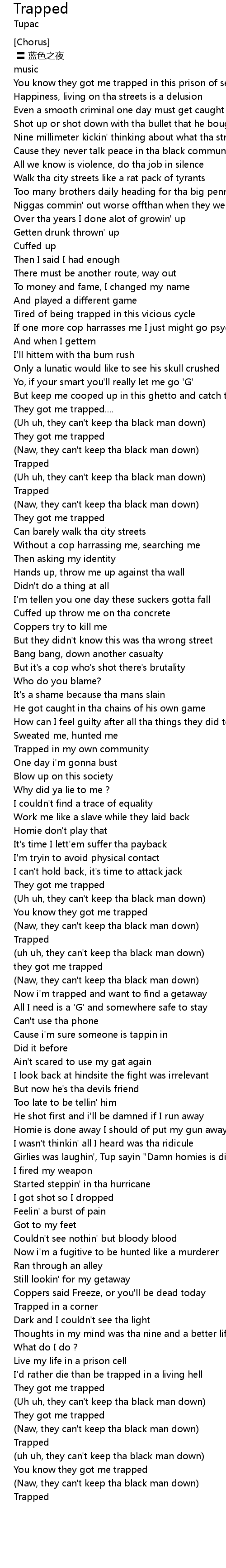 | [01:18.25] | They got me trapped.... |
