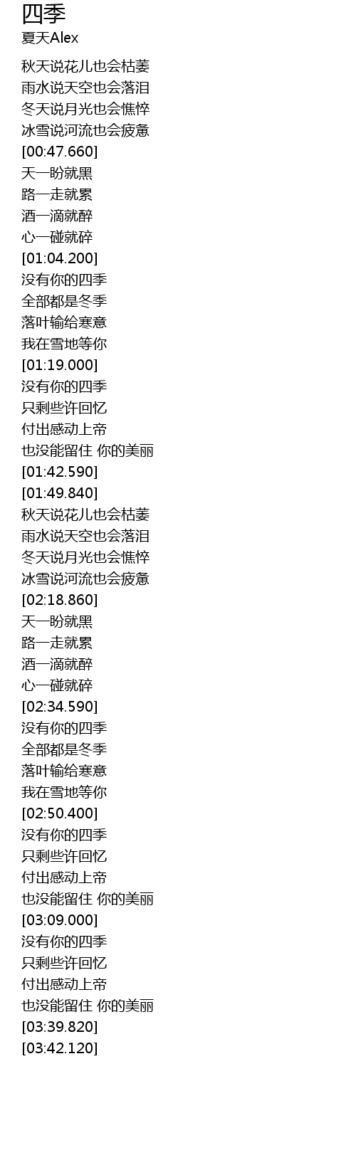 | [01:04.700] | 没有你的四季 |