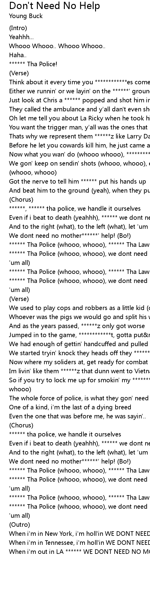 ****** Tha Police (whooo, whooo), we dont need no mother******' help! (****** 'um all) |